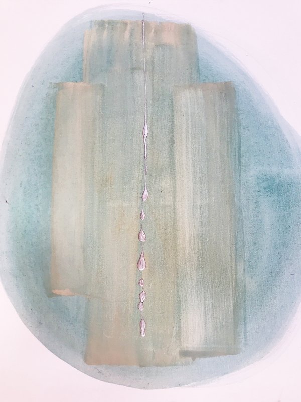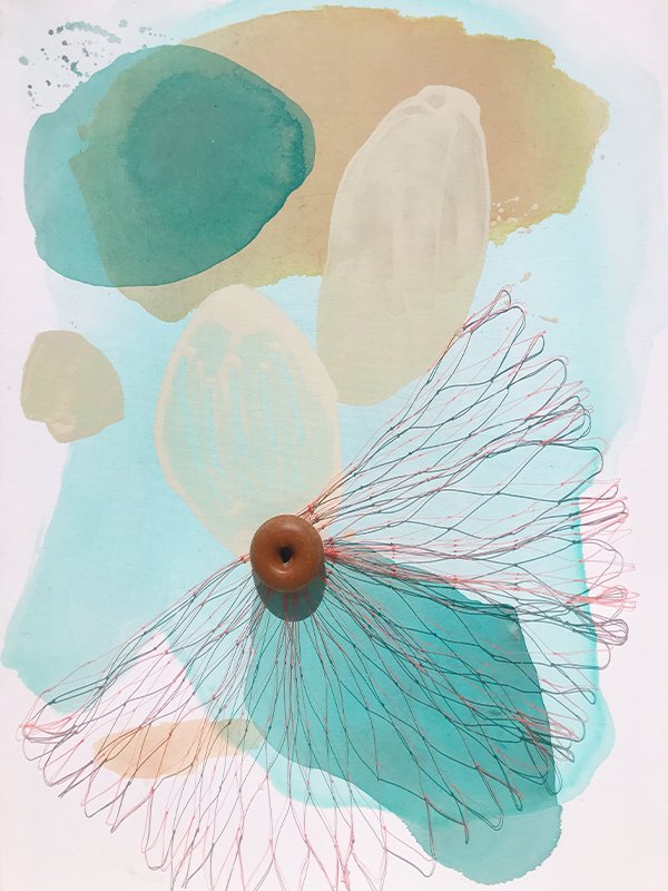 Acrílico y arena. Red de pesca en desuso y boya en desuso. Sobre lienzo