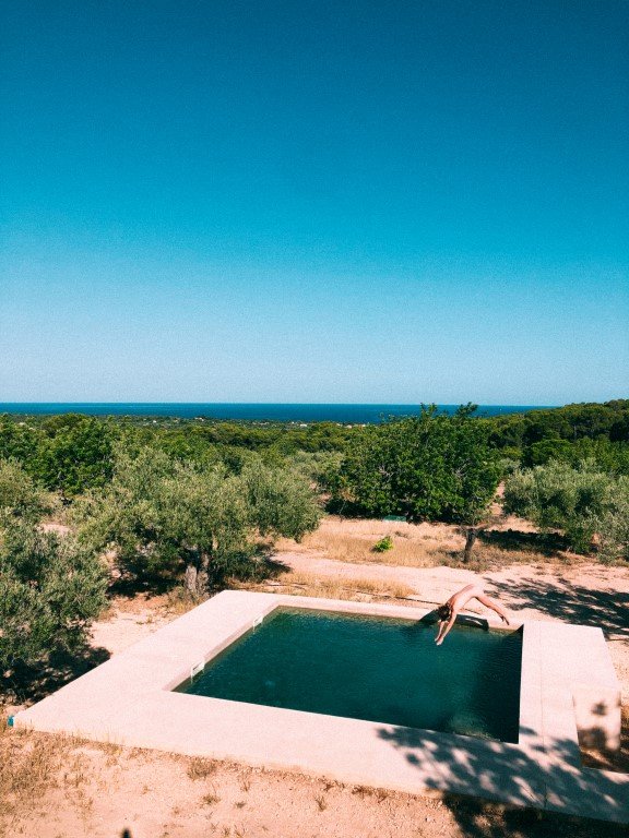 La Salvatge es una casa de campo rodeada de olivos con vistas al mar Mediterráneo. Un encuentro con la naturaleza apasionadamente salado. Intimidad y tranquilidad total en las 2 hectáreas de la finca, totalmente vallada y conservada. Sus muros de piedra seca confrontan con el verde turquesa de la piscina que se funde con el horizonte. Amaneceres dorados y noches en calma. A pocos kilómetros de las mejores calas de agua cristalina de la zona. Campo y playa para re-conectarse con el entorno.